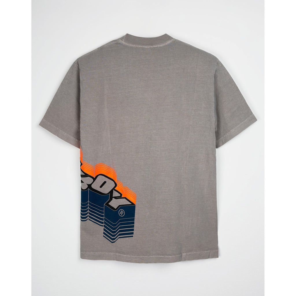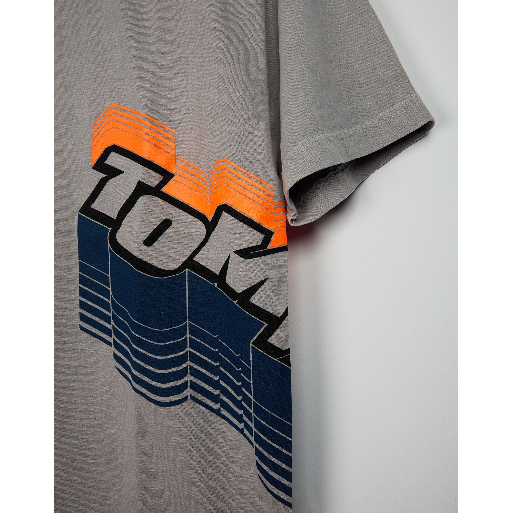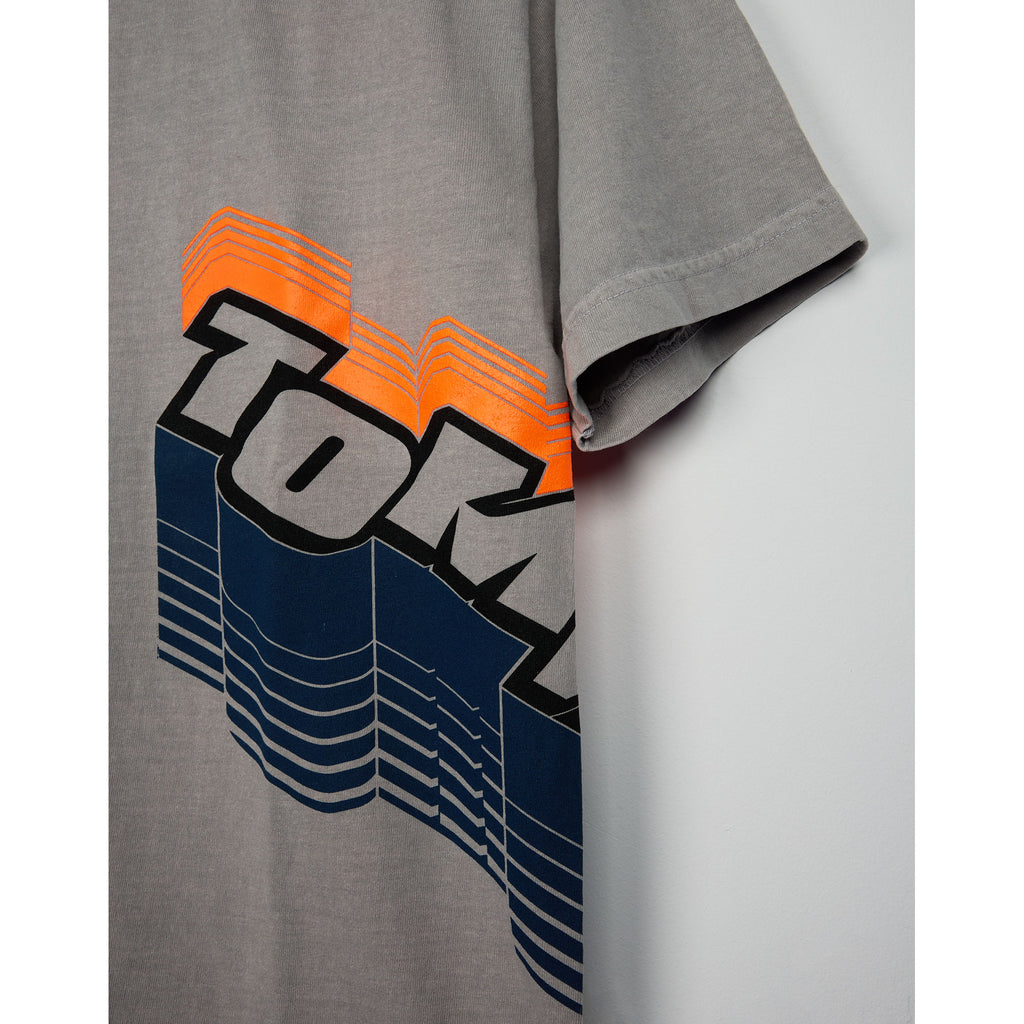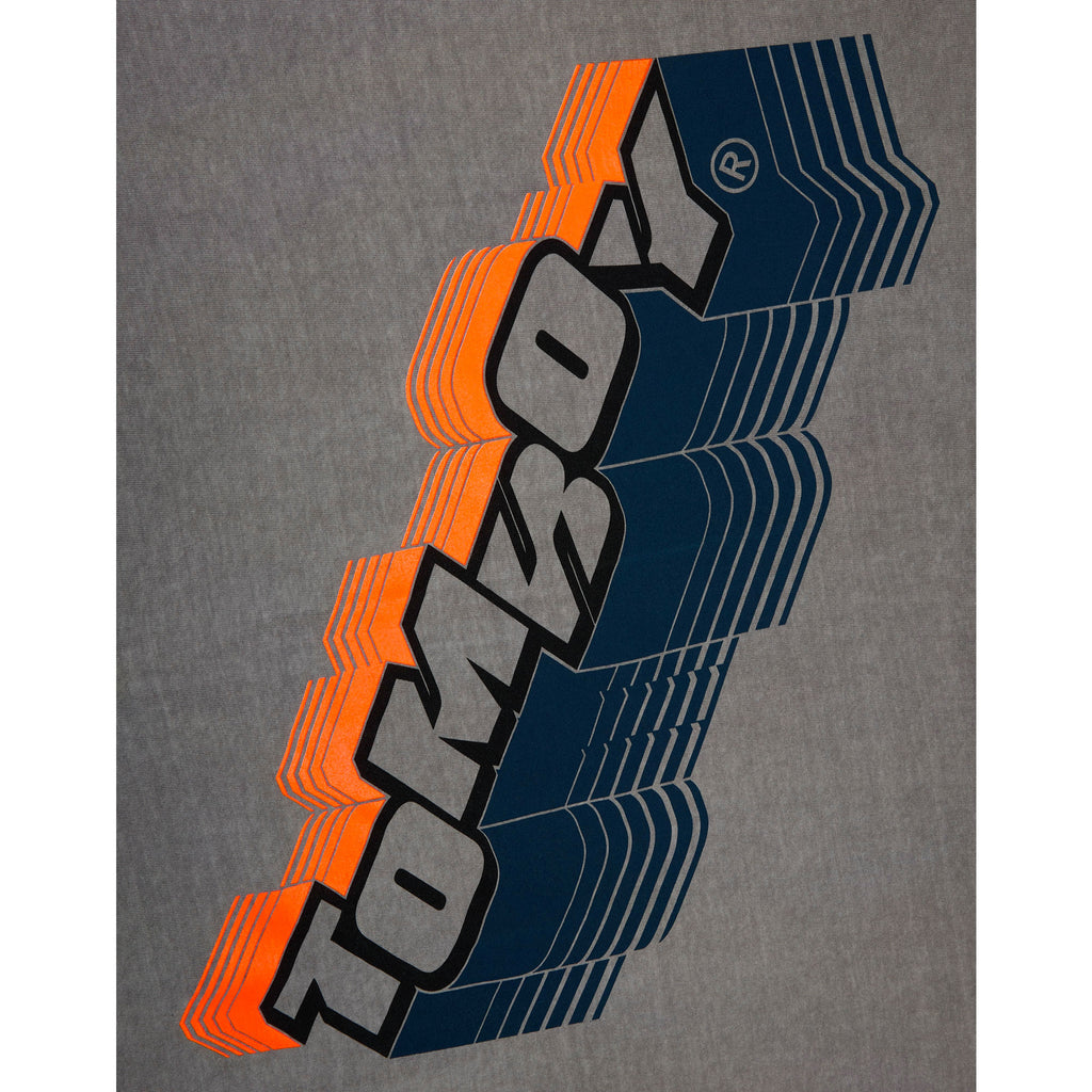 - COLORS: TIE & DYE GREY JERSEY WITH BLACK, NAVY BLUE & NEON ORANGE PRINTS