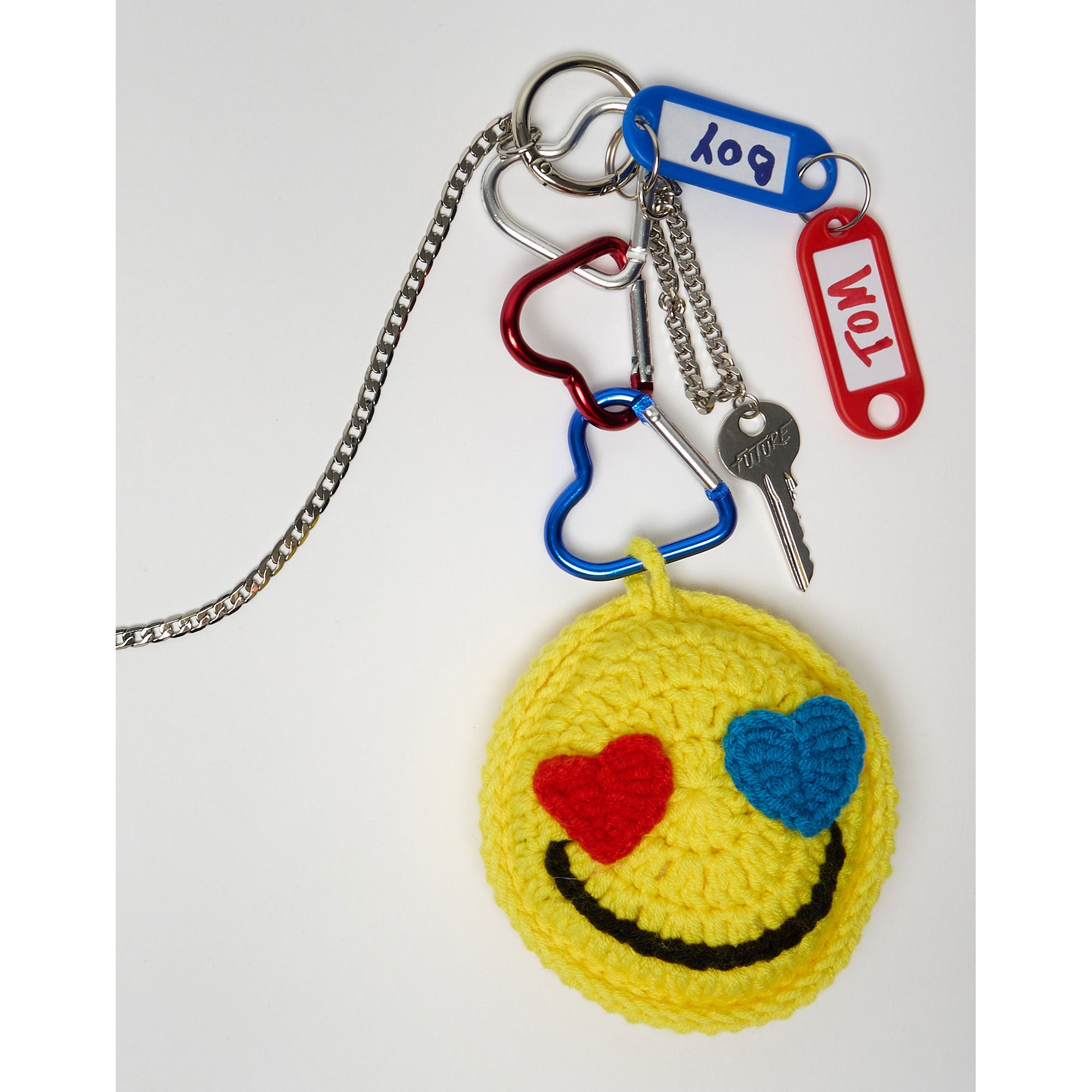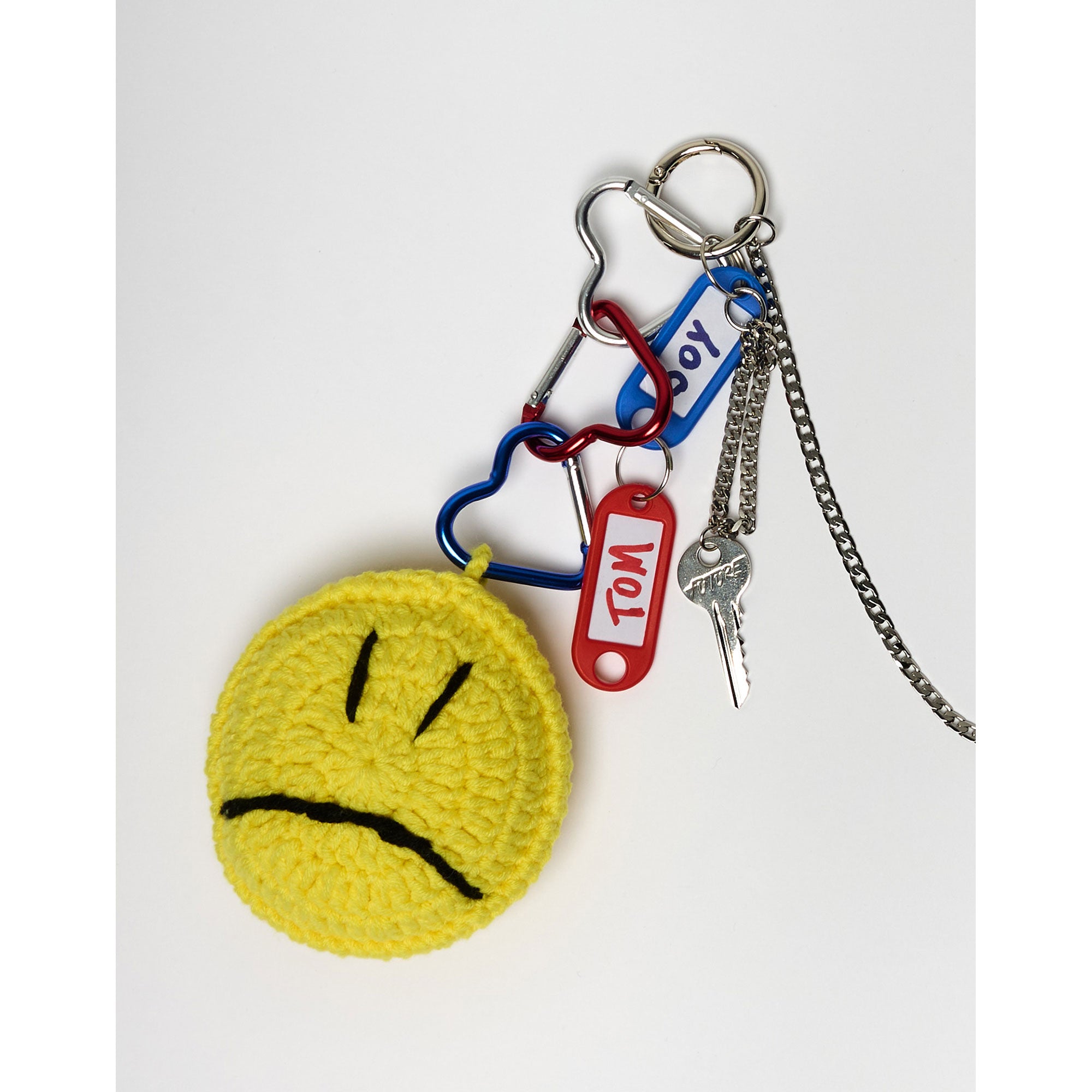 - 1 SMILEY CROCHET CHARM ATTACHED TO 3 METAL HEART CARABINERS (COLOR MAY VARY AS THE SELECTION IS RANDOM), ONE HAPPY FACE 🙂 ONE UNHAPPY FACE ☹️
